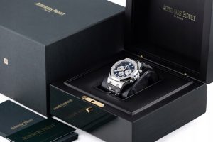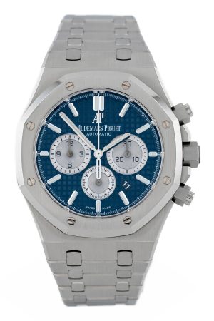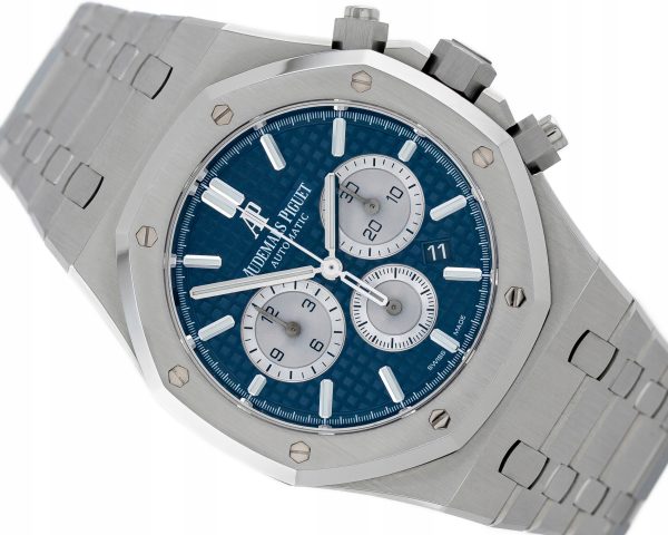 Przedmiotem sprzedaży jest przepiękny zegarek manufakturyAUDEMARS PIGUET ROYAL OAK CHRONOGRAPH STEEL BLUE DIAL REF. 26331ST.OO.1220ST.01 FULL SET UNWORN(zdjęcia autentyczne – przedstawiają sprzedawany egzemplarz)