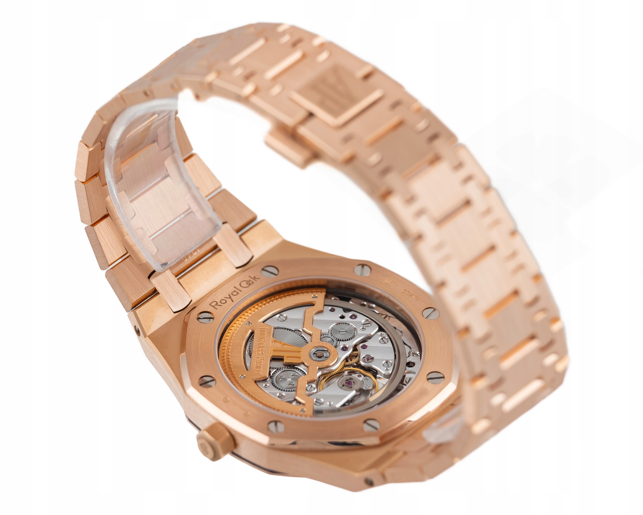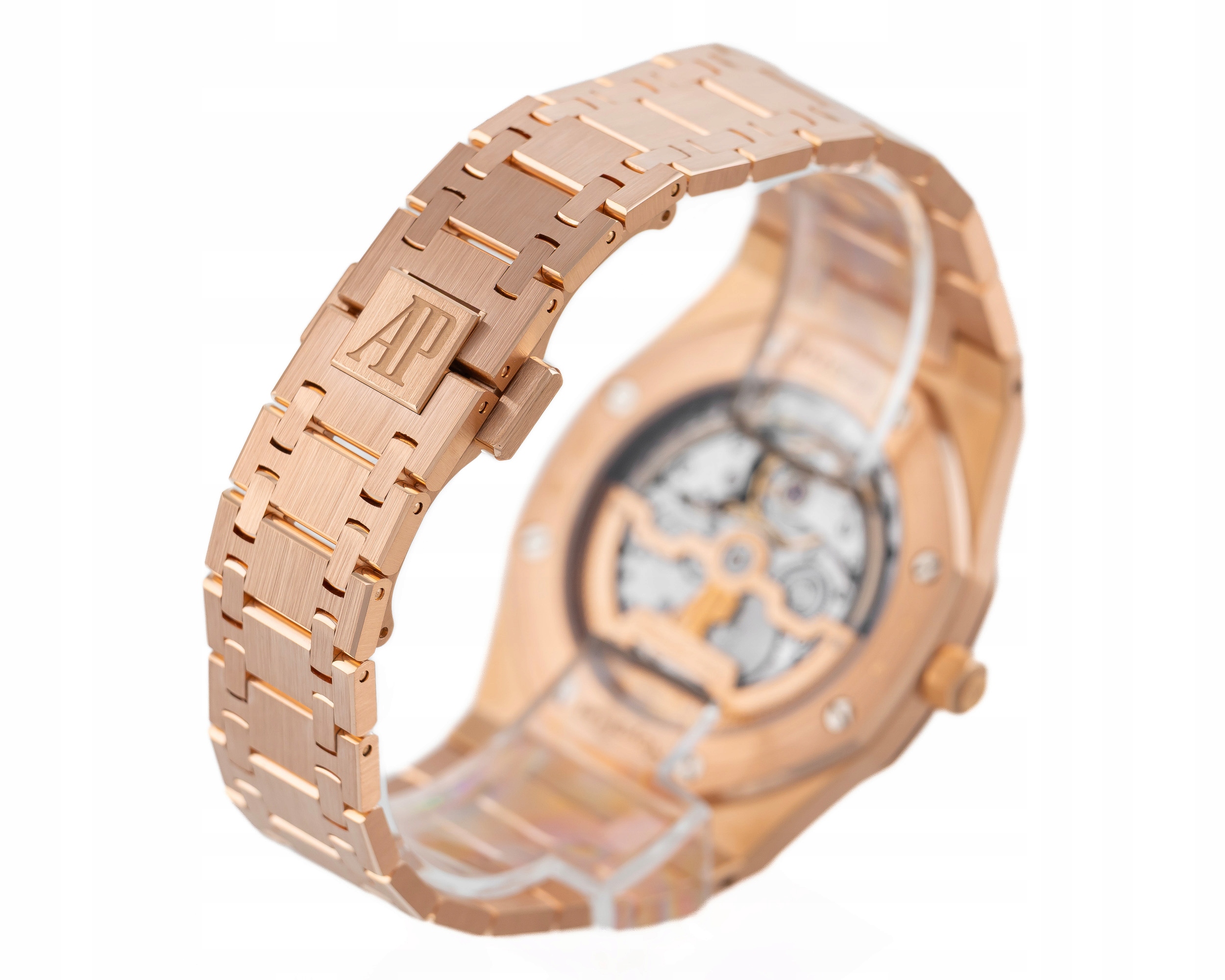 Numer referencyjny: 15202OR.OO.1240OR.01.AMechanizm: automatyczny, cal. 2121, 36 kamieni łożyskujących, 40h rezerwy choduObudowa: 39 mm, koperta i bezel z różowego złota 18K, niebieska tarcza, szafirowe szkiełko, przezroczysty dekielWodoszczelność: 5 ATMBransoleta/pasek: różowe złoto 18KZapięcie: podwójny zatrzask – różowe złoto 18KKomplikacje/funkcje: dataRok produkcji: 2021Stan: bardzo dobryPłeć: zegarek męski/unisexZawartość dostawy: oryginalne pudełko, komplet dokumentów, firmowa faktura