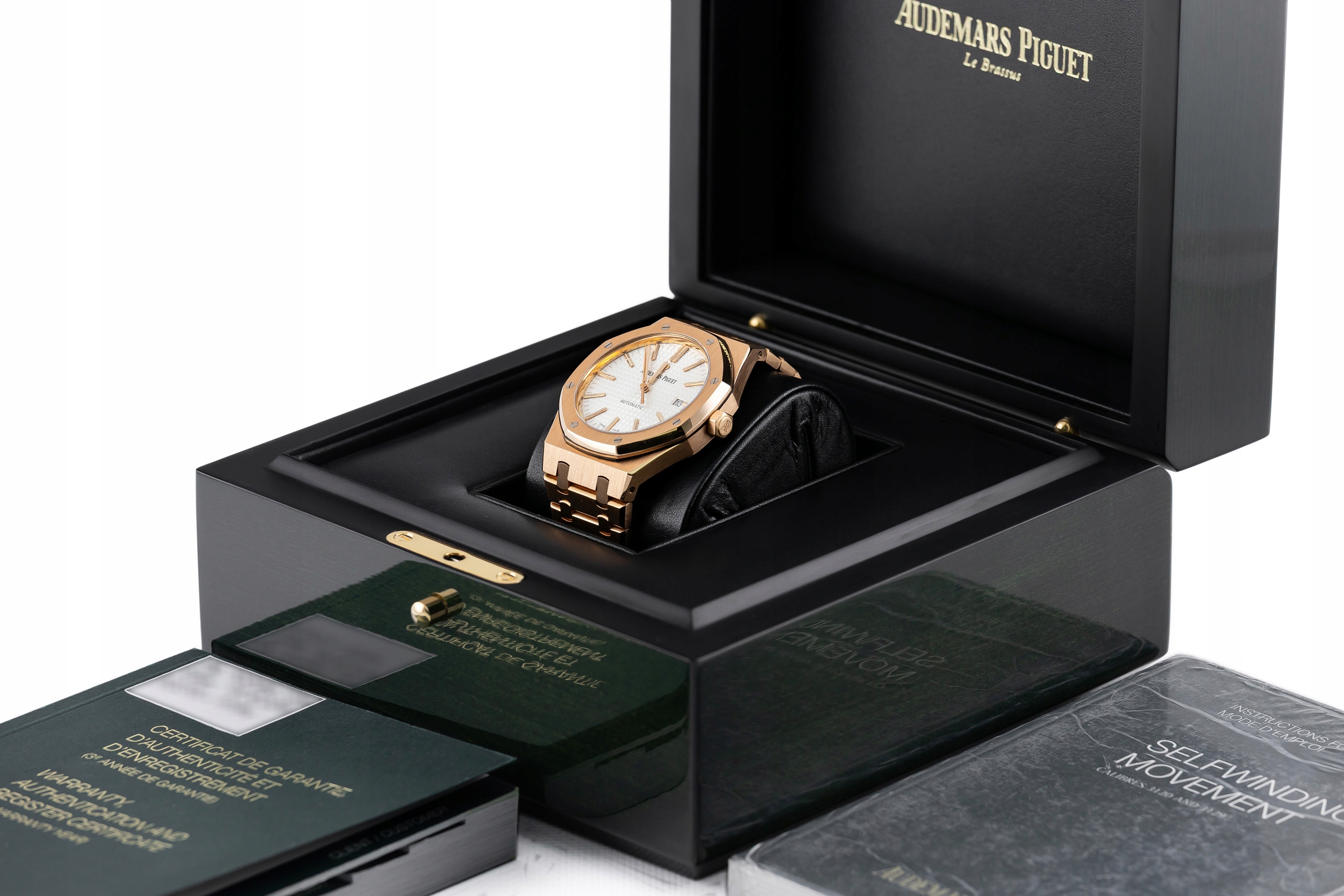 Royal Watch > Produkty > luksusowe zegarki > Męskie > AUDEMARS PIGUET ROYAL OAK SELFWINDING ROSE GOLD 18K SILVER/WHITE DIAL REF. 15400OR.OO.1220OR.02 FULL SET