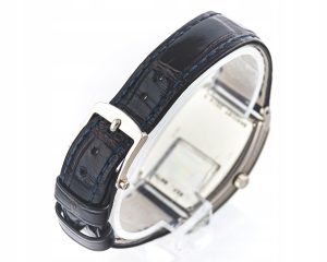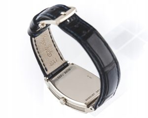 Obudowa: Białe złoto 18K, 25 mm, szafirowe szkiełko z antyrefleksem, wodoszczelność 1ATM