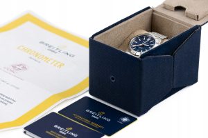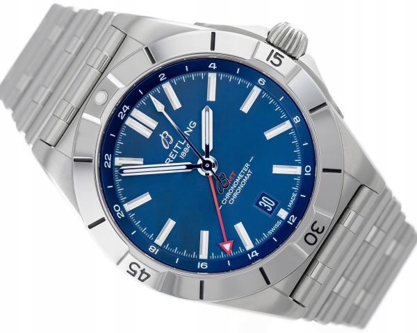 BREITLING CHRONOMAT GMT AUTOMATIC STEEL BLUE DIAL REF. A32398101C1A1 FULL SET