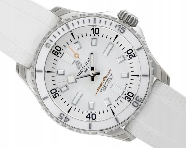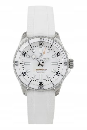Royal Watch > Produkty > luksusowe zegarki > Męskie > BREITLING SUPEROCEAN 36 STEEL WHITE DIAL WHITE RUBBER REF. A17377 UNWORN STICKERS