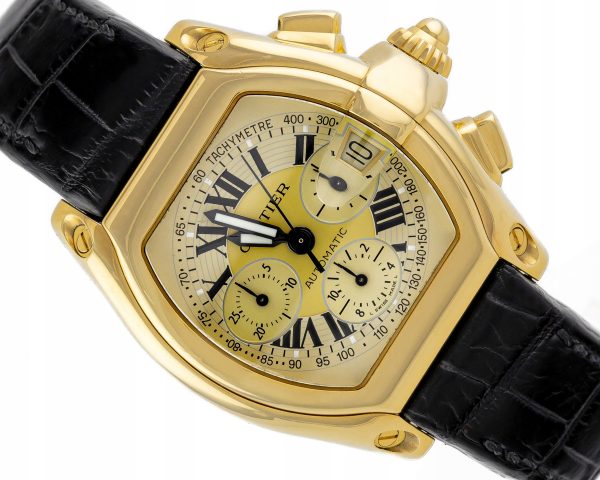 Przedmiotem sprzedaży jest przepiękny zegarek manufakturyCARTIER ROADSTER CHRONO XL 18K GOLD REF. 2619 FULL SET(zdjęcia autentyczne – przedstawiają sprzedawany egzemplarz)
