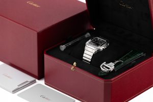 Royal Watch > Produkty > luksusowe zegarki > Męskie > CARTIER SANTOS DE CARTIER MEDIUM STEEL GREEN DIAL REF. WSSA0061 FULL SET +LEATHER STRAP