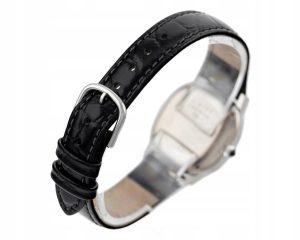 Pasek: czarna skóra, zapięcie klamrowe (stal)
