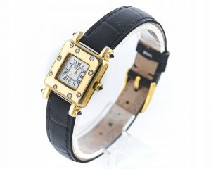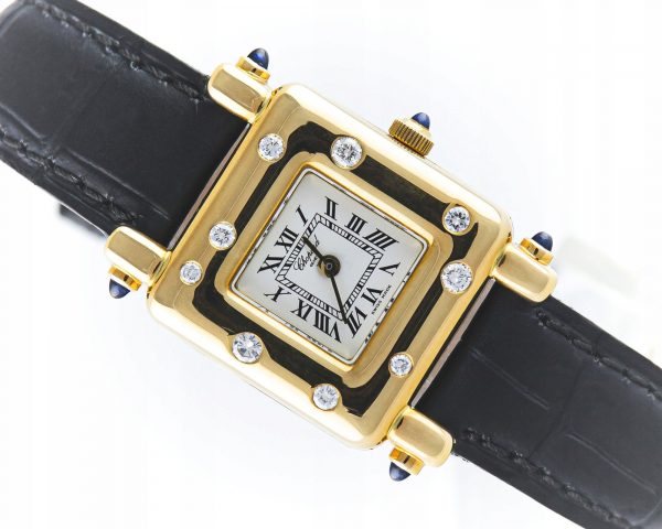 Chopard słynie ze idealnego połączenia praktycznych zegarków z ciekawymi projektami biżuteryjnymi. Wyrazem tego jest prezentowany zegarek z serii Happy Sport. Wykonany w całości z 18-sto karatowe złota, z lunetą wysadzaną najwyższej jakości diamentami to prestiżowy dodatek kobiecej kreacji.