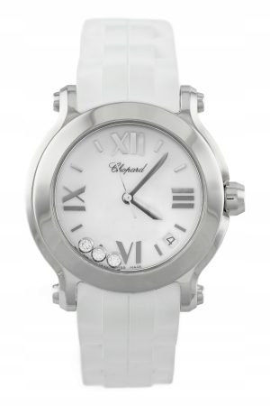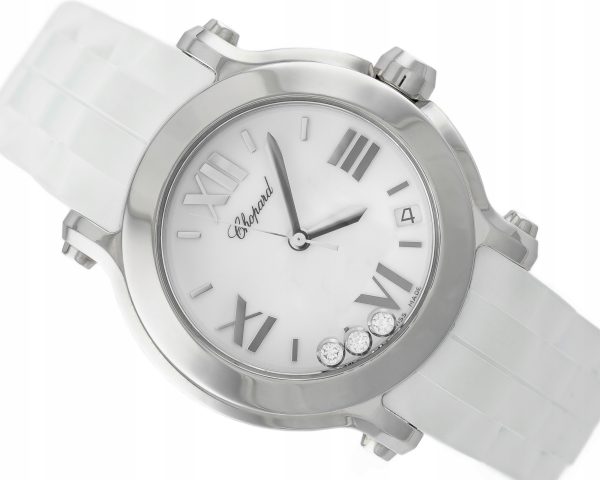 CHOPARD HAPPY SPORT STEEL 3 DIAMONDS WHITE RUBBER STRAP REF. 278475-3016