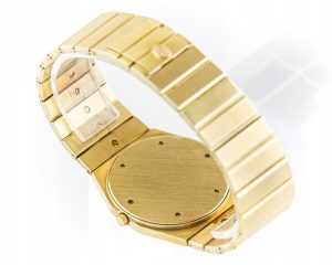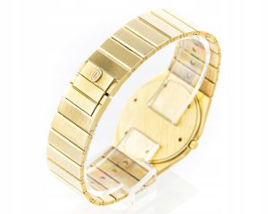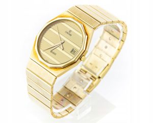 Obudowa: żółte złoto 14k, 33mm, mineralne szkiełko, wodoszczelność 3ATM