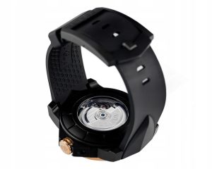 Obudowa: 48 mm, koperta z tytanu, bezel z różowego złota 18K, szafirowe szkiełko, przezroczysty dekiel
