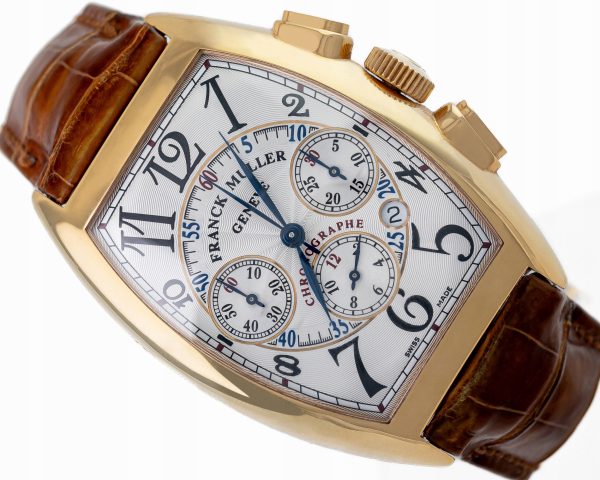 Zegarek Franck Muller Chronograph Cintree Curvex Master of Complications Ref. 8880 CC AT to wyjątkowy czasomierz, który łączy w sobie mistrzowskie rzemiosło, innowacyjny design i kompleksowe funkcje. Franck Muller to renomowany szwajcarski producent zegarków luksusowych, znany z tworzenia unikalnych i precyzyjnych zegarków.