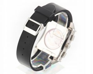 Pasek: czarny kauczuk, zapięcie pojedynczy motylek (stal)