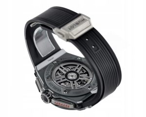 Obudowa: 45 mm, koperta i bezel z ceramiki, szafirowe szkiełko, przezroczysty dekiel, szkieletowa tarcza