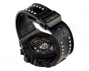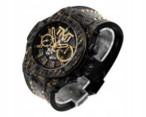 Numer referencyjny: 411.QX.1180.PR.TMT18 – edycja limitowana do 100 szt.Mechanizm: automatyczny, cal. HUB1242 UNICO, 38 kamieni łożyskujących, 72h rezerwy choduObudowa: 45 mm, koperta i bezel z włókna węglowego i żółtego złota 18K, szkieletowa tarcza, szafirowe szkiełko, przezroczysty dekielWodoszczelność: 10 ATMBransoleta/pasek: czarny kauczuk/skóraZapięcie: pojedynczy zatrzask – tytan/włókno węgloweKomplikacje/funkcje: chronograf, mechanizm flyback, mała sekunda, dataRok produkcji: 2018 (przybliżona data)Stan: bardzo dobryPłeć: zegarek męski/unisexZawartość dostawy: oryginalne pudełko, komplet dokumentów, firmowa faktura