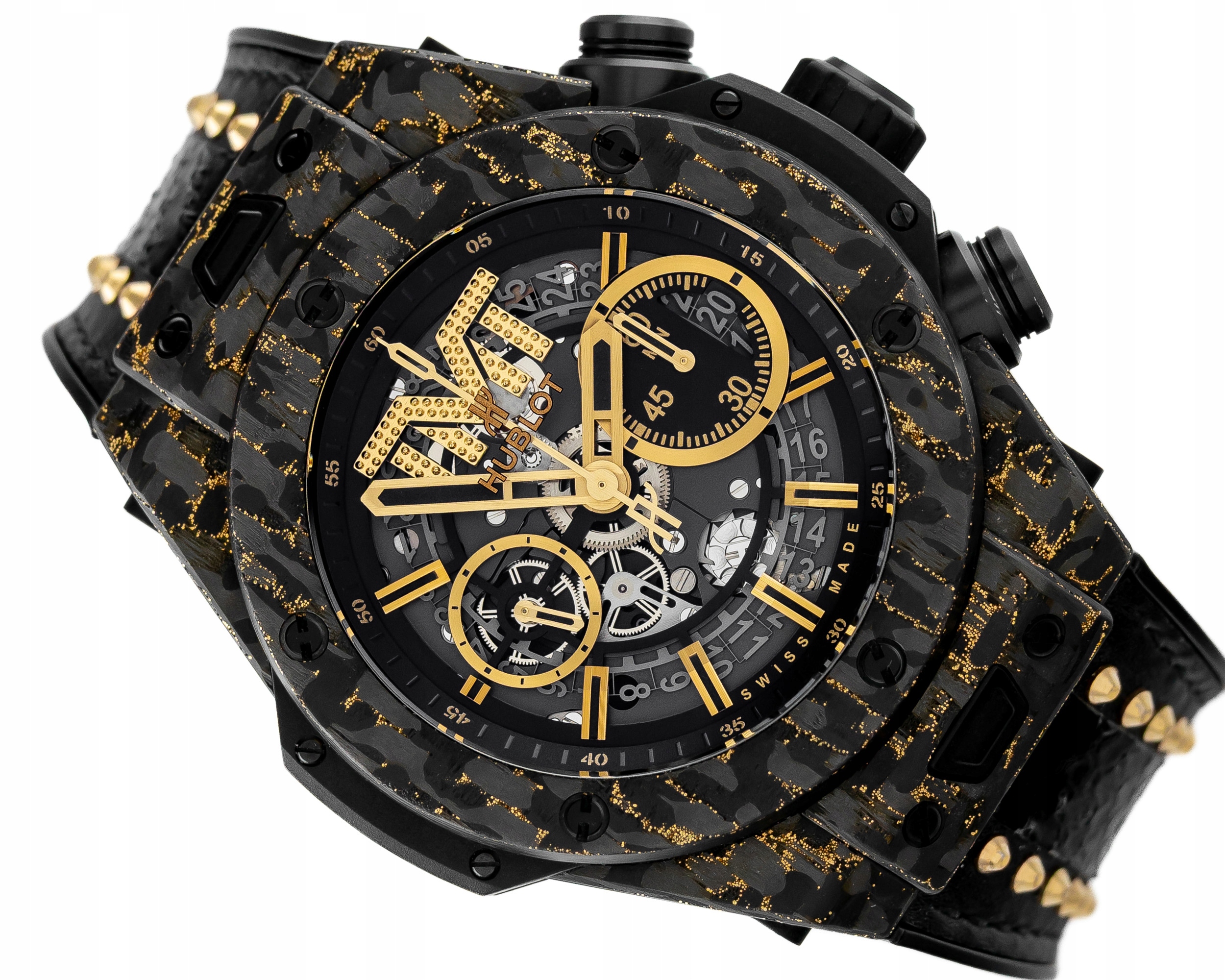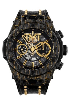 HUBLOT BIG BANG UNICO TMT FLOYD MAYWEATHER LIMITED EDITION 100 PCS CHRONOGRAPH CARBON/YELLOW GOLD 18K SKELETON DIAL REF. 411.QX.1180.PR.TMT18 FULL SET