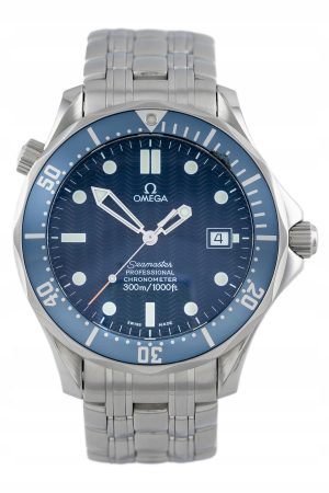 Numer referencyjny: 168.1623Mechanizm: automatyczny, cal. Omega 1120, 23 kamienie łożyskujące, 44h rezerwy choduObudowa: 41 mm, koperta i obrotowy bezel ze stali, niebieska tarcza, szafirowe szkiełko, zawór helowyWodoszczelność: 30 ATMBransoleta/pasek: stalZapięcie: pojedynczy zatrzask – stalKomplikacje/funkcje: data, chronometrRok produkcji: nieznanyStan: dobryPłeć: zegarek męski/unisexZawartość dostawy: firmowe pudełko, certyfikat autentyczności, firmowa faktura