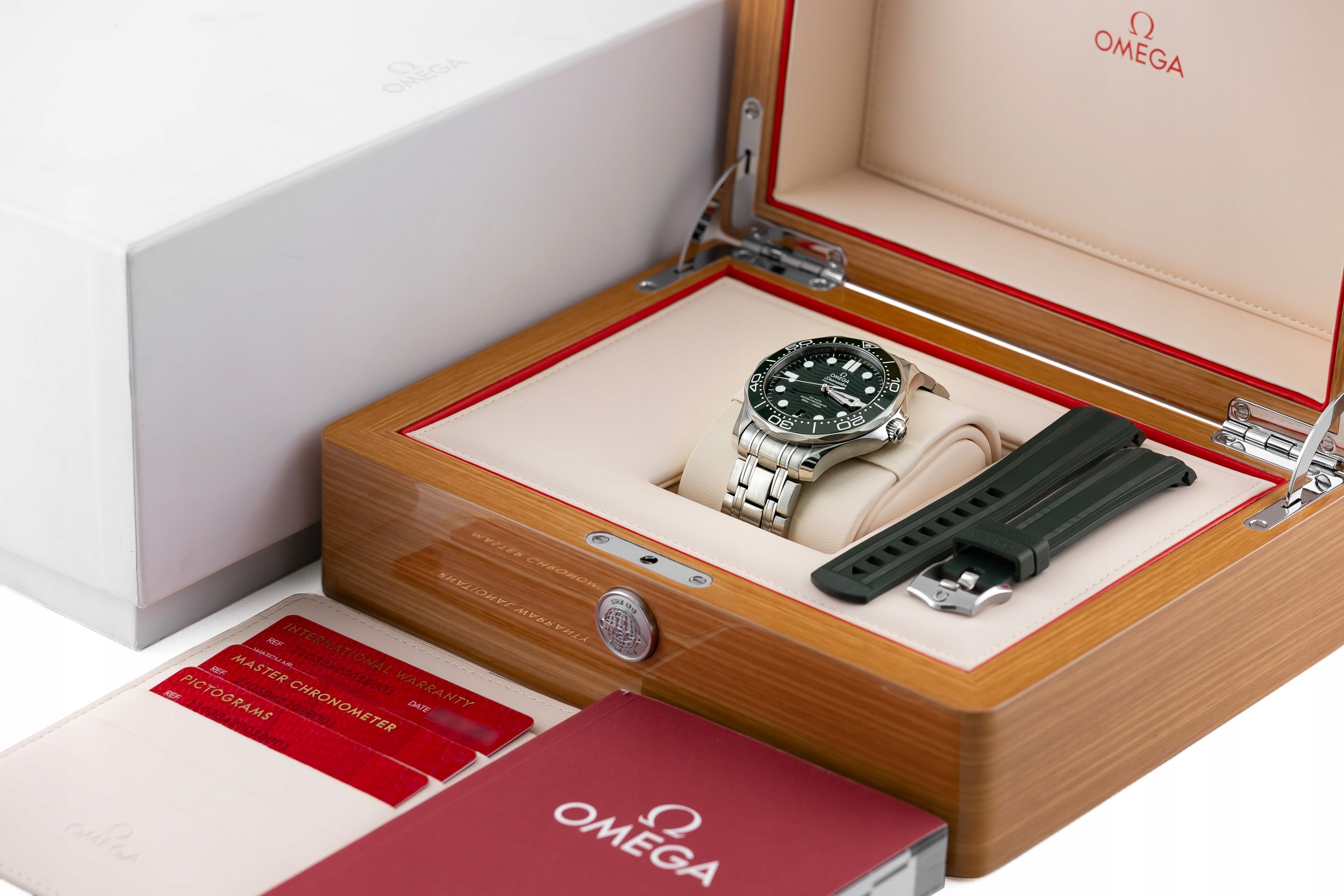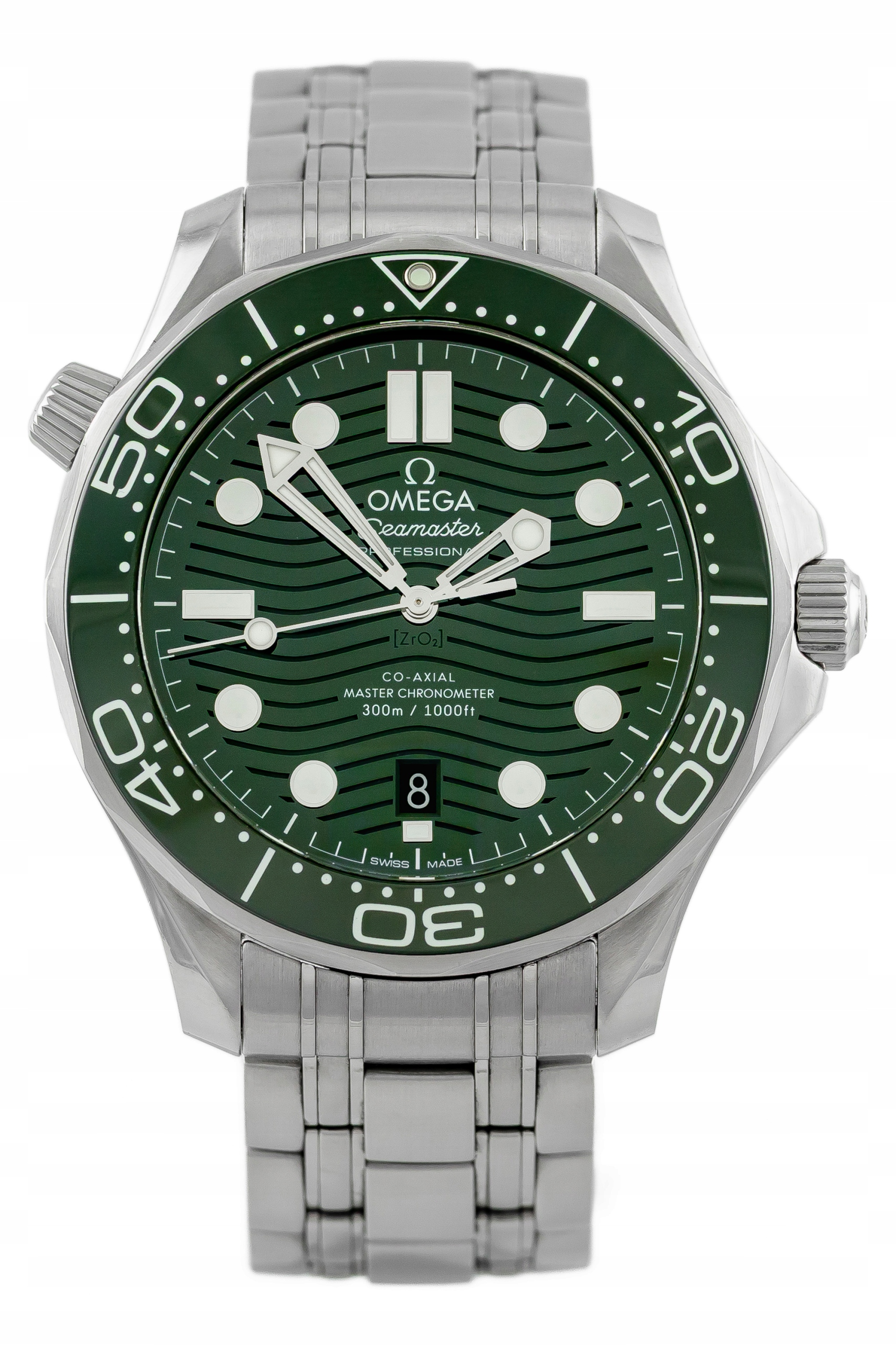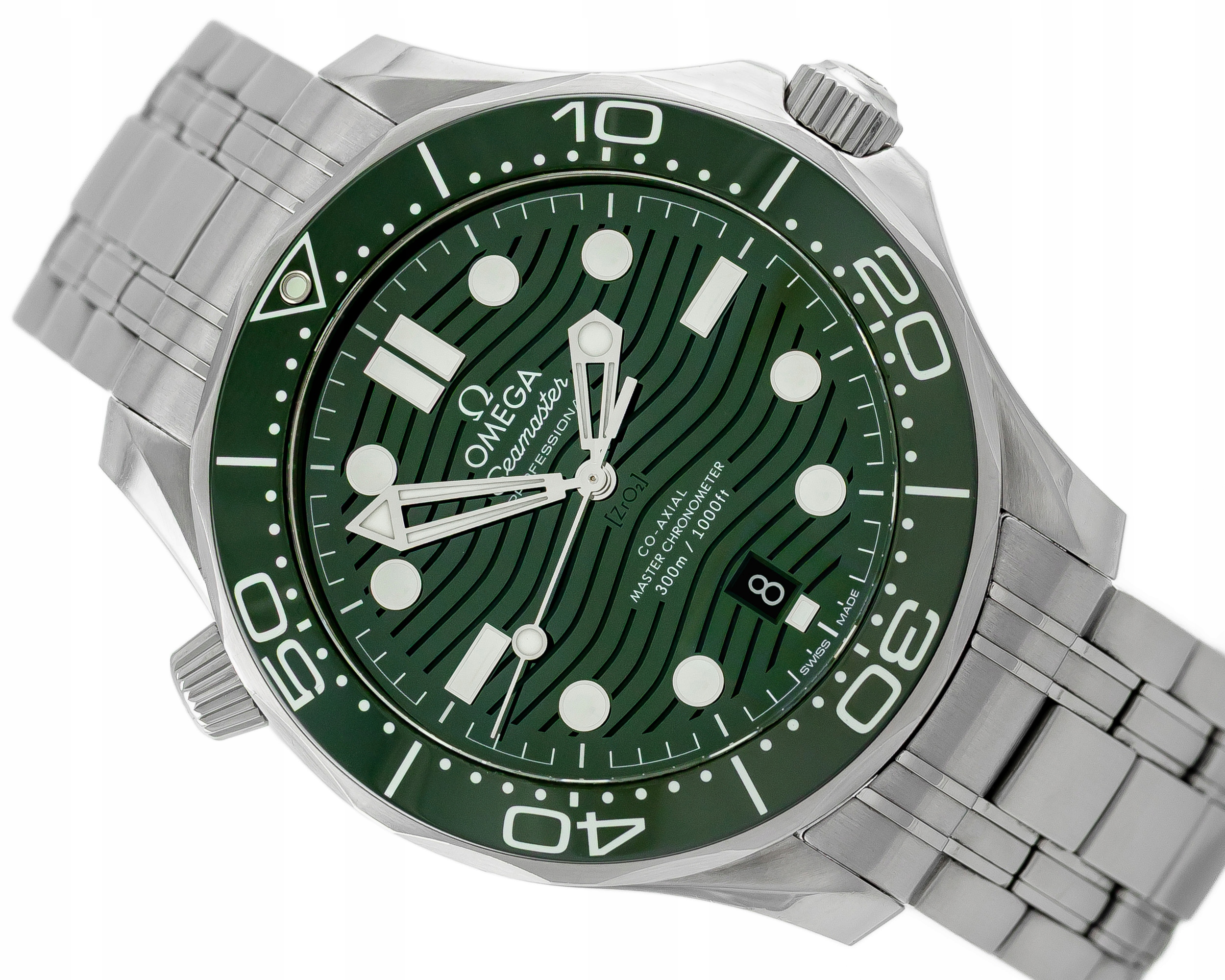 OMEGA SEAMASTER DIVER 300M STEEL GREEN WAVE DIAL REF. 210.30.42.20.10.001 FULL SET +RUBBER STRAP