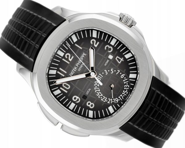 Przedmiotem sprzedaży jest przepiękny zegarek manufakturyPATEK PHILIPPE AQUANAUT TRAVEL TIME STEEL BLACK/GREY DIAL REF. 5164A-001 FULL SET(zdjęcia autentyczne – przedstawiają sprzedawany egzemplarz)