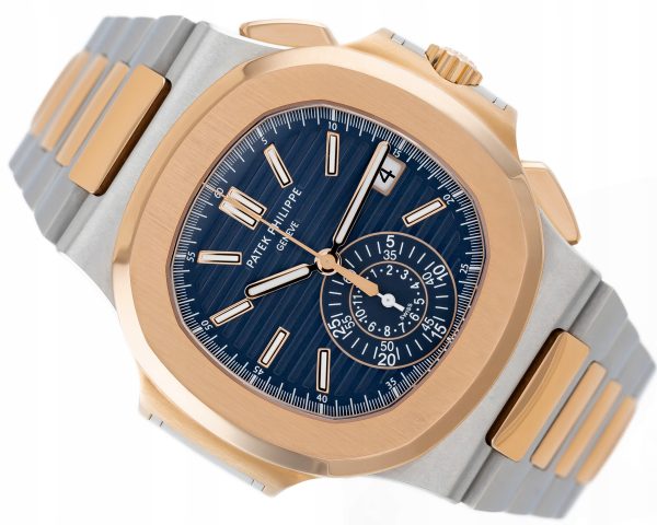 Przedmiotem sprzedaży jest przepiękny zegarek manufakturyPATEK PHILIPPE NAUTILUS CHRONOGRAPH STEEL/ROSE GOLD 18K BLUE DIAL REF. 5980/1AR-001 FULL SET(zdjęcia autentyczne – przedstawiają sprzedawany egzemplarz)