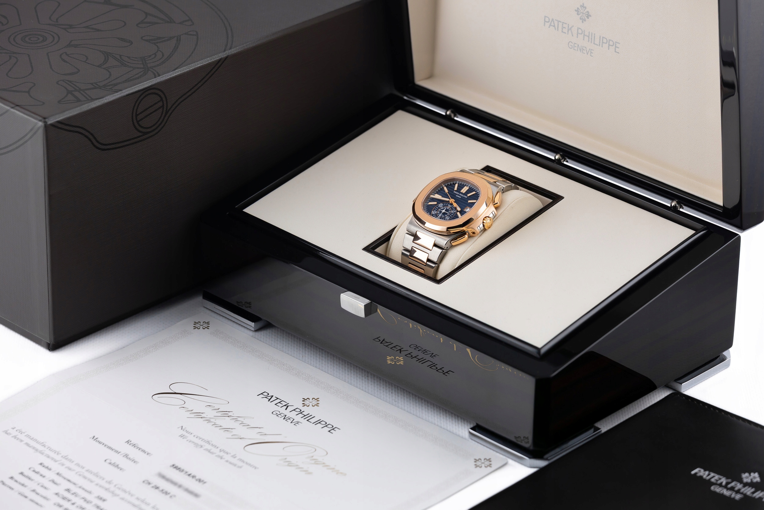 PATEK PHILIPPE NAUTILUS CHRONOGRAPH STEEL/ROSE GOLD 18K BLUE DIAL REF. 5980/1AR-001 FULL SET