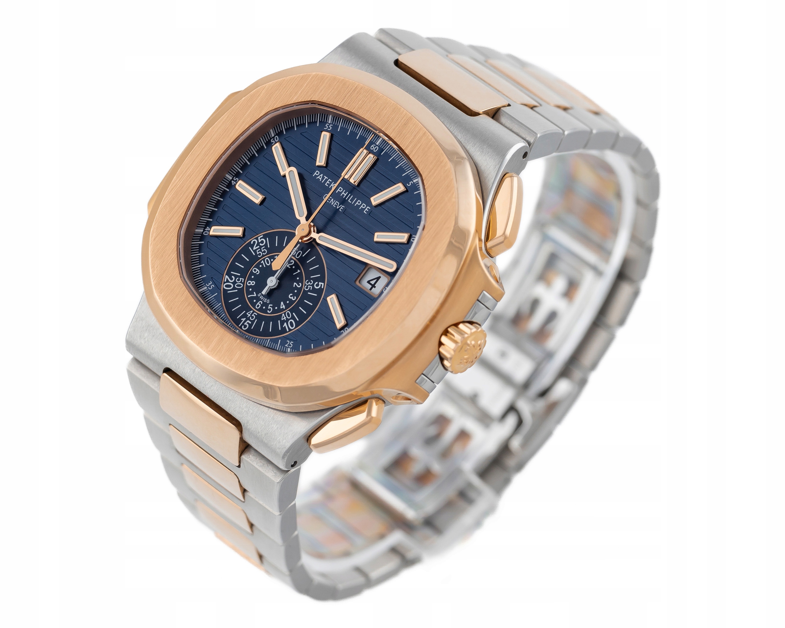 Przedmiotem sprzedaży jest przepiękny zegarek manufakturyPATEK PHILIPPE NAUTILUS CHRONOGRAPH STEEL/ROSE GOLD 18K BLUE DIAL REF. 5980/1AR-001 FULL SET(zdjęcia autentyczne – przedstawiają sprzedawany egzemplarz)
