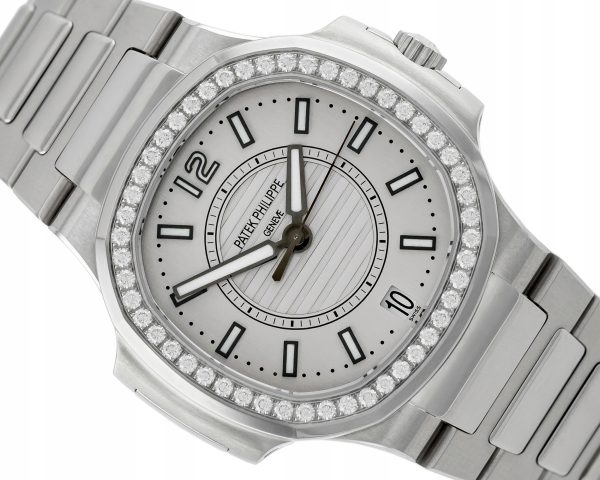 PATEK PHILIPPE NAUTILUS LADY DIAMONDS STEEL SILVER DIAL REF. 7008/1A-011 BOX+EXTRACT