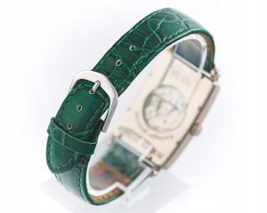 Pasek: zielona skóra, zapięcie klamrowe (stal)