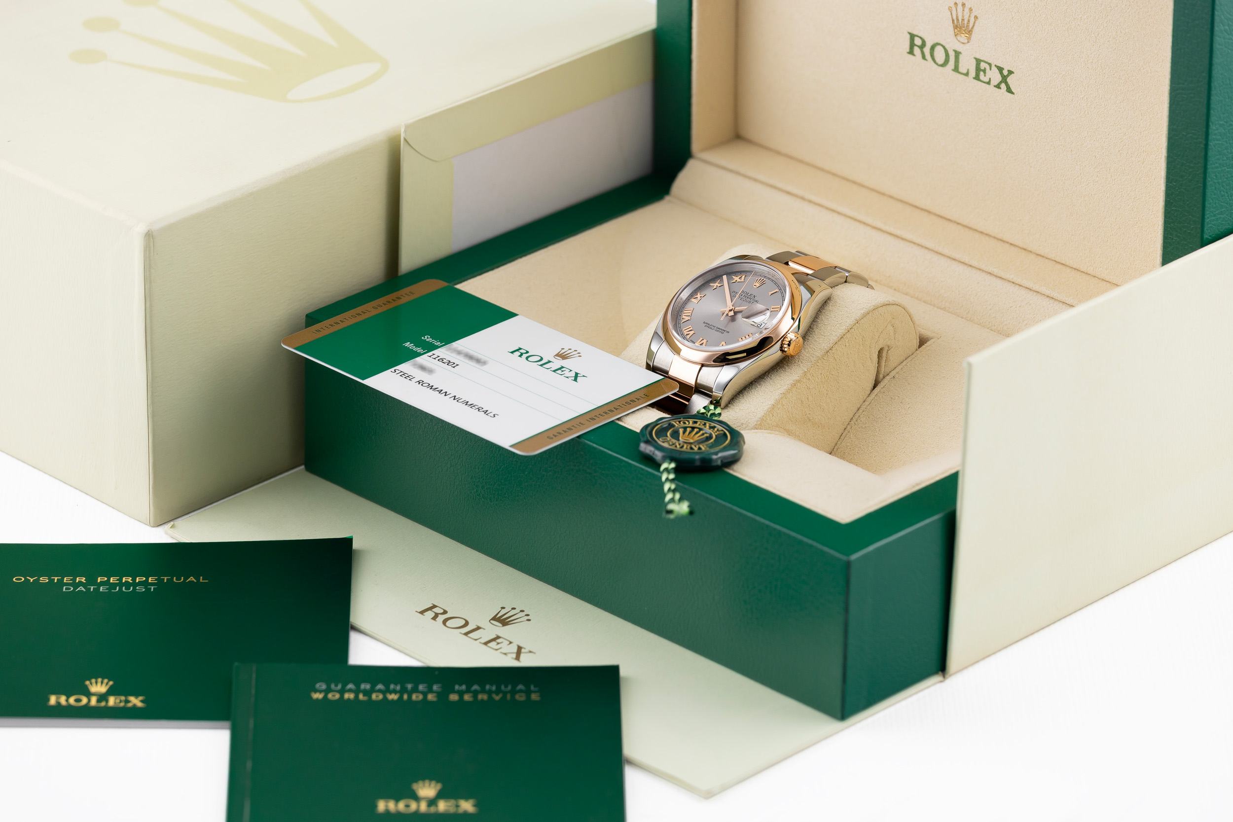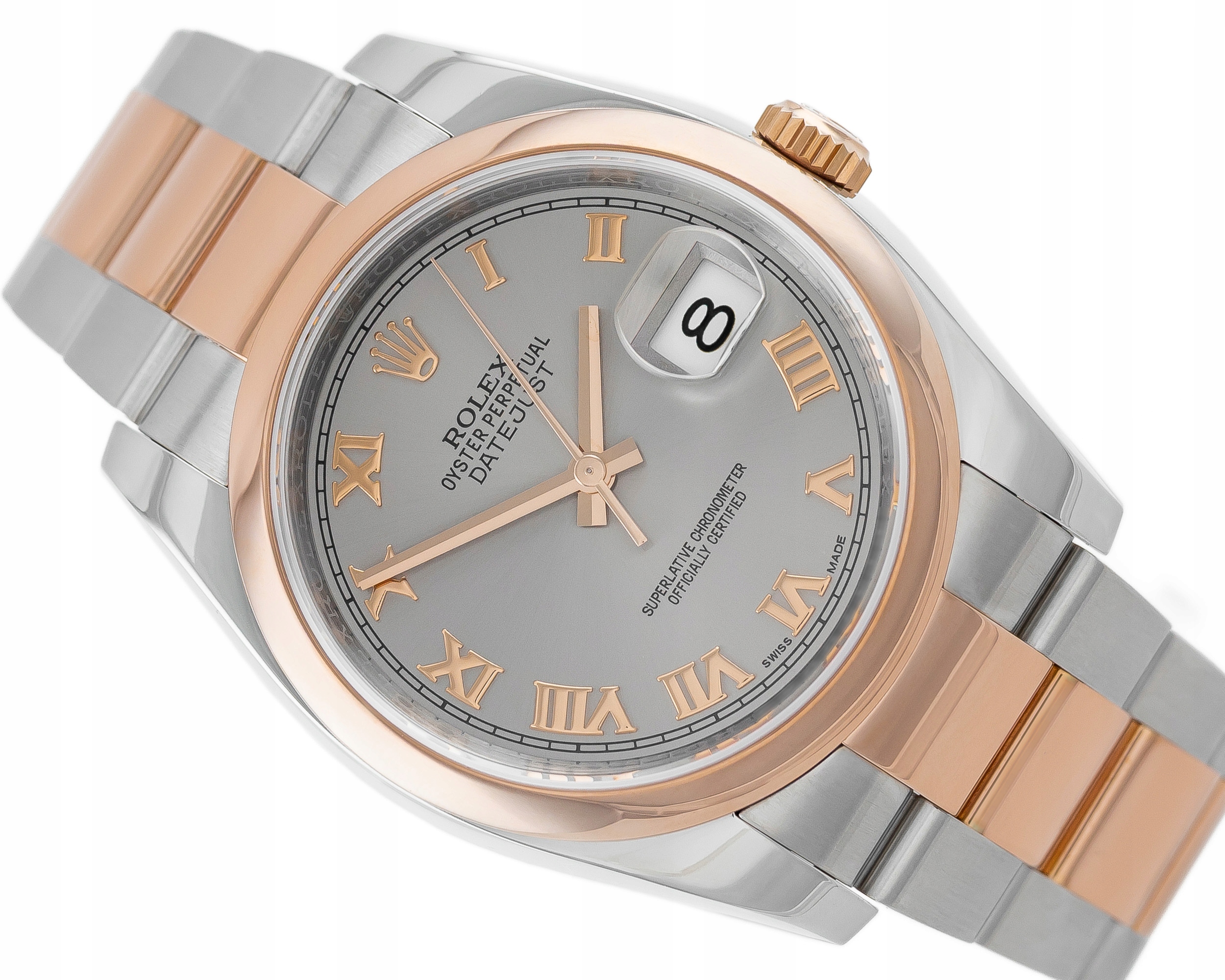 ROLEX DATEJUST 36 OYSTER STEEL/ROSE GOLD 18K GREY ROMAN DIAL REF. 116201 FULL SET
