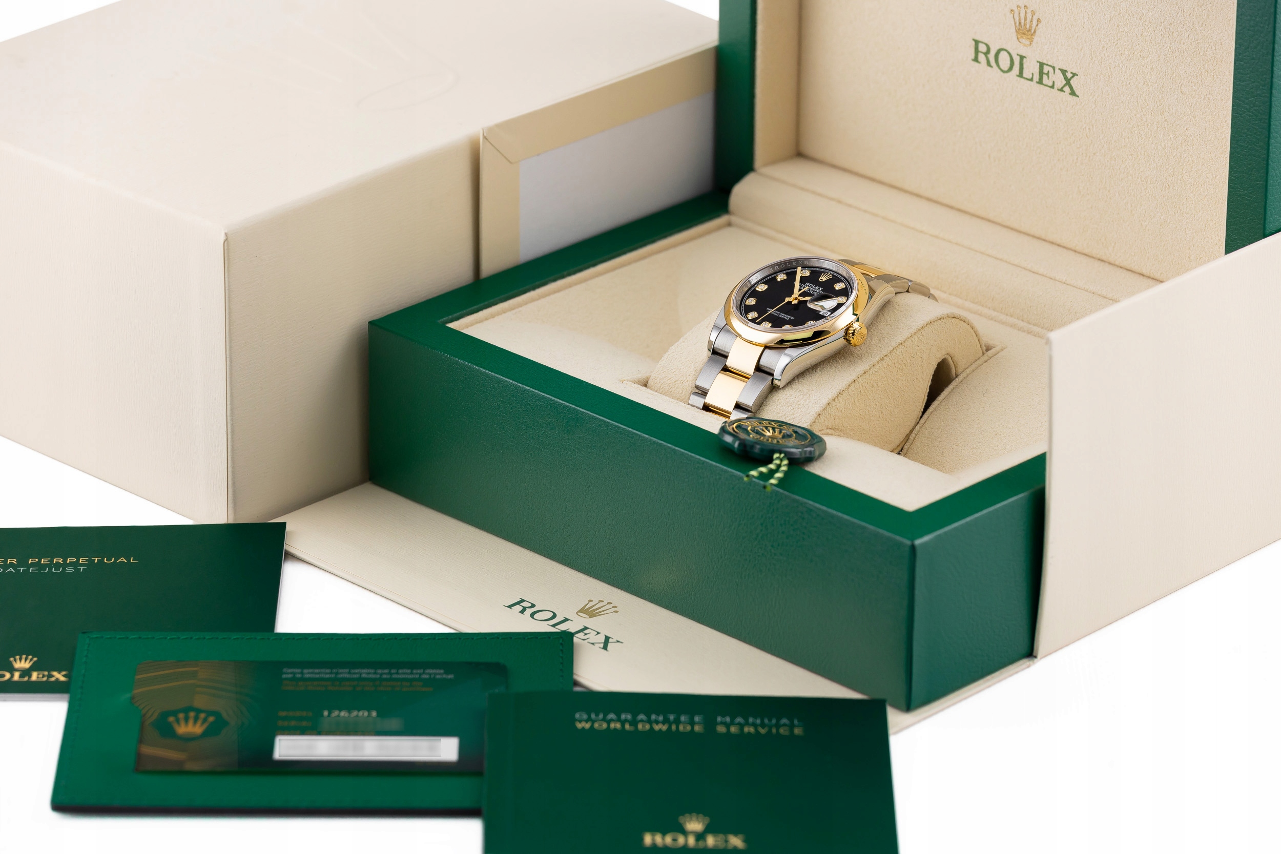 Royal Watch > Produkty > luksusowe zegarki > Męskie > ROLEX DATEJUST 36 OYSTER STEEL/YELLOW GOLD 18K BLACK DIAMOND DIAL REF. 126203 FULL SET