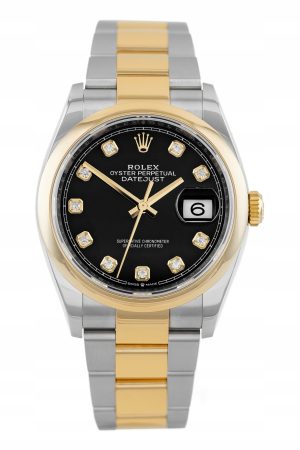 ROLEX DATEJUST 36 OYSTER STEEL/YELLOW GOLD 18K BLACK DIAMOND DIAL REF. 126203 FULL SET