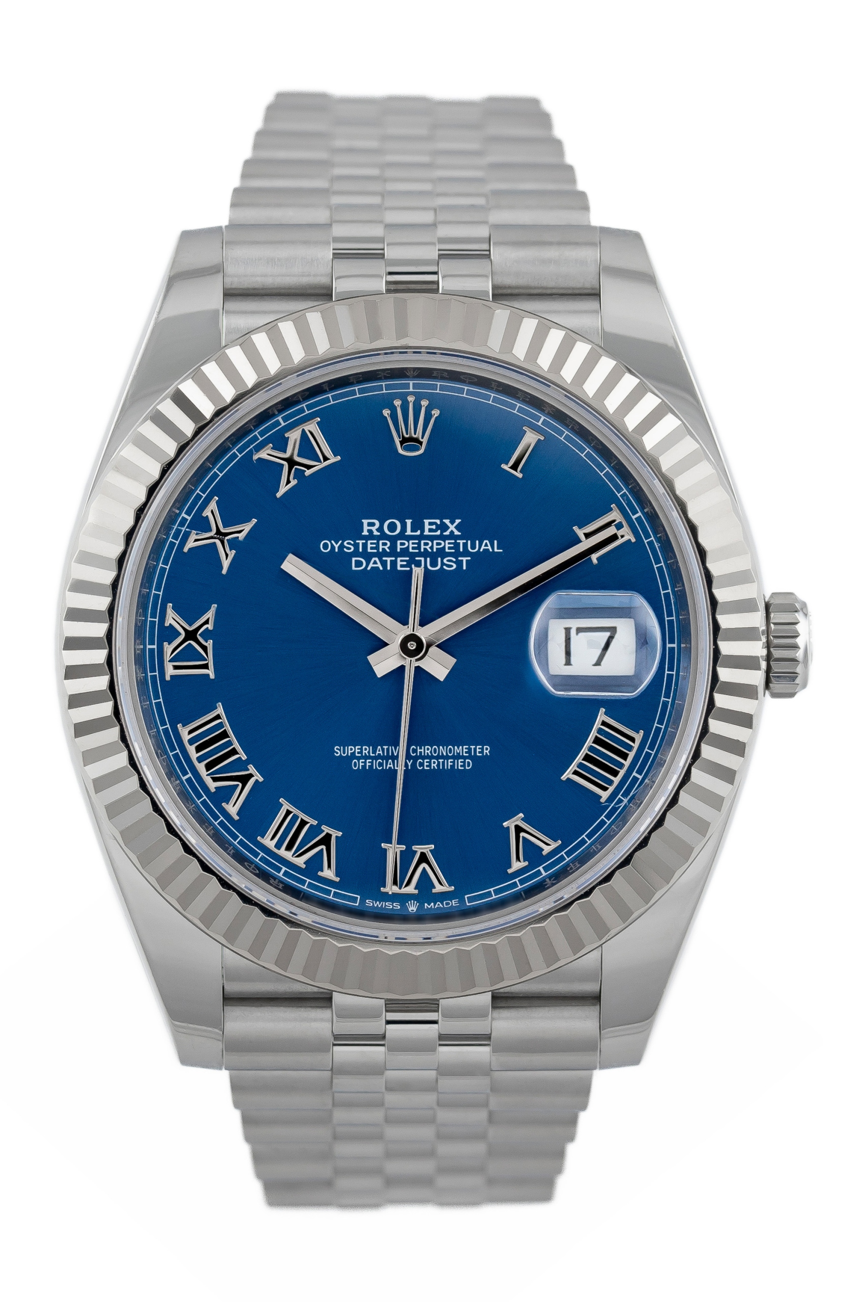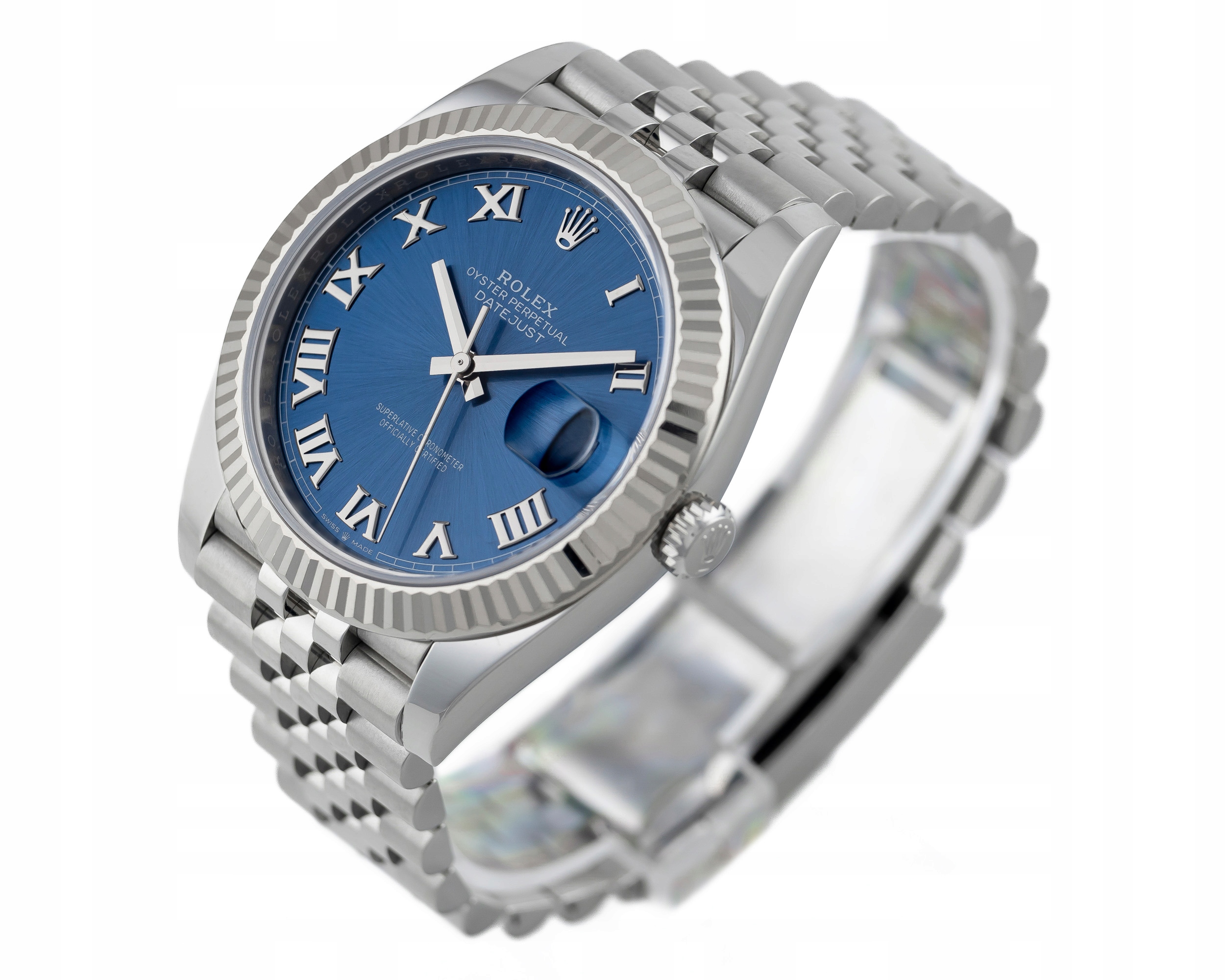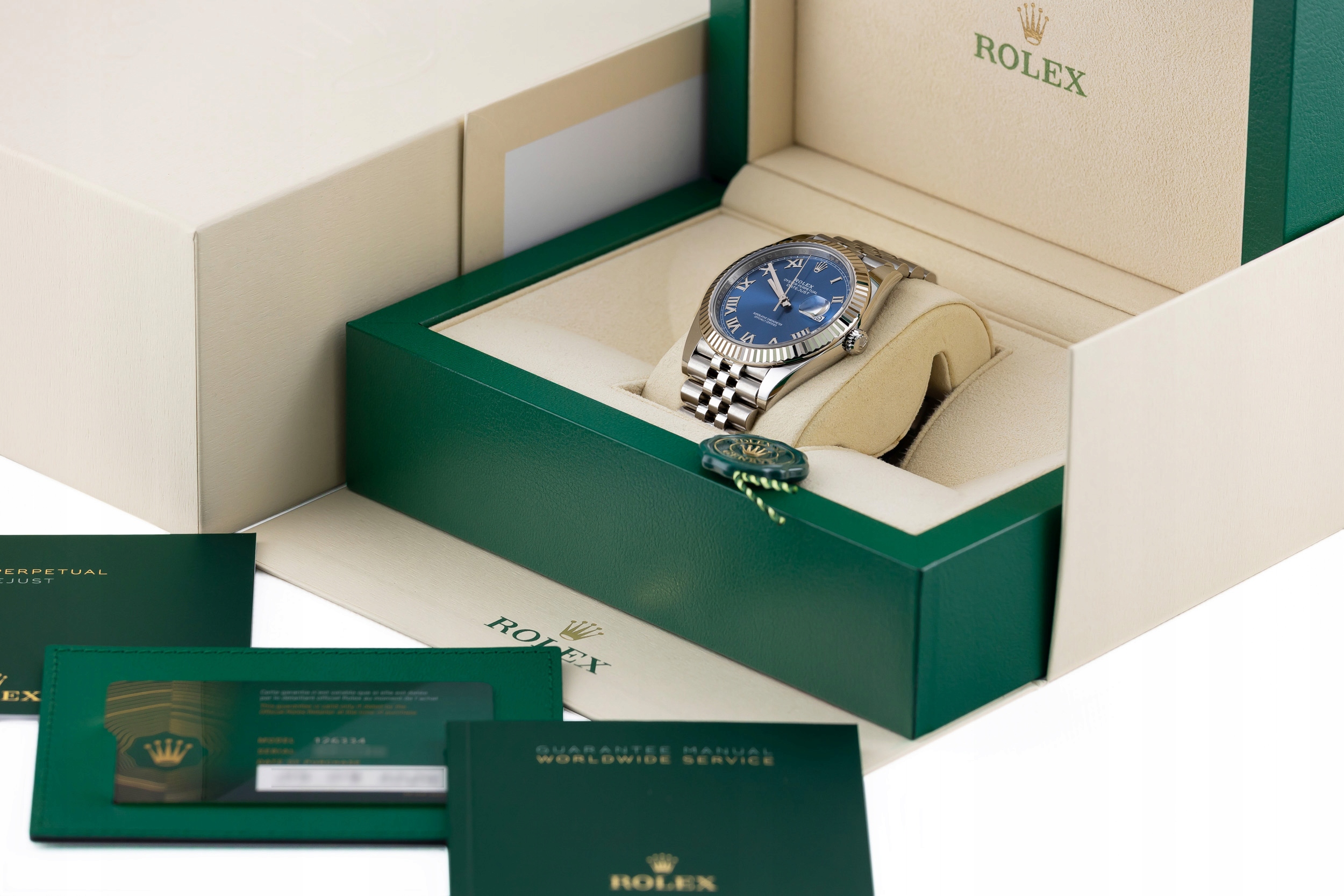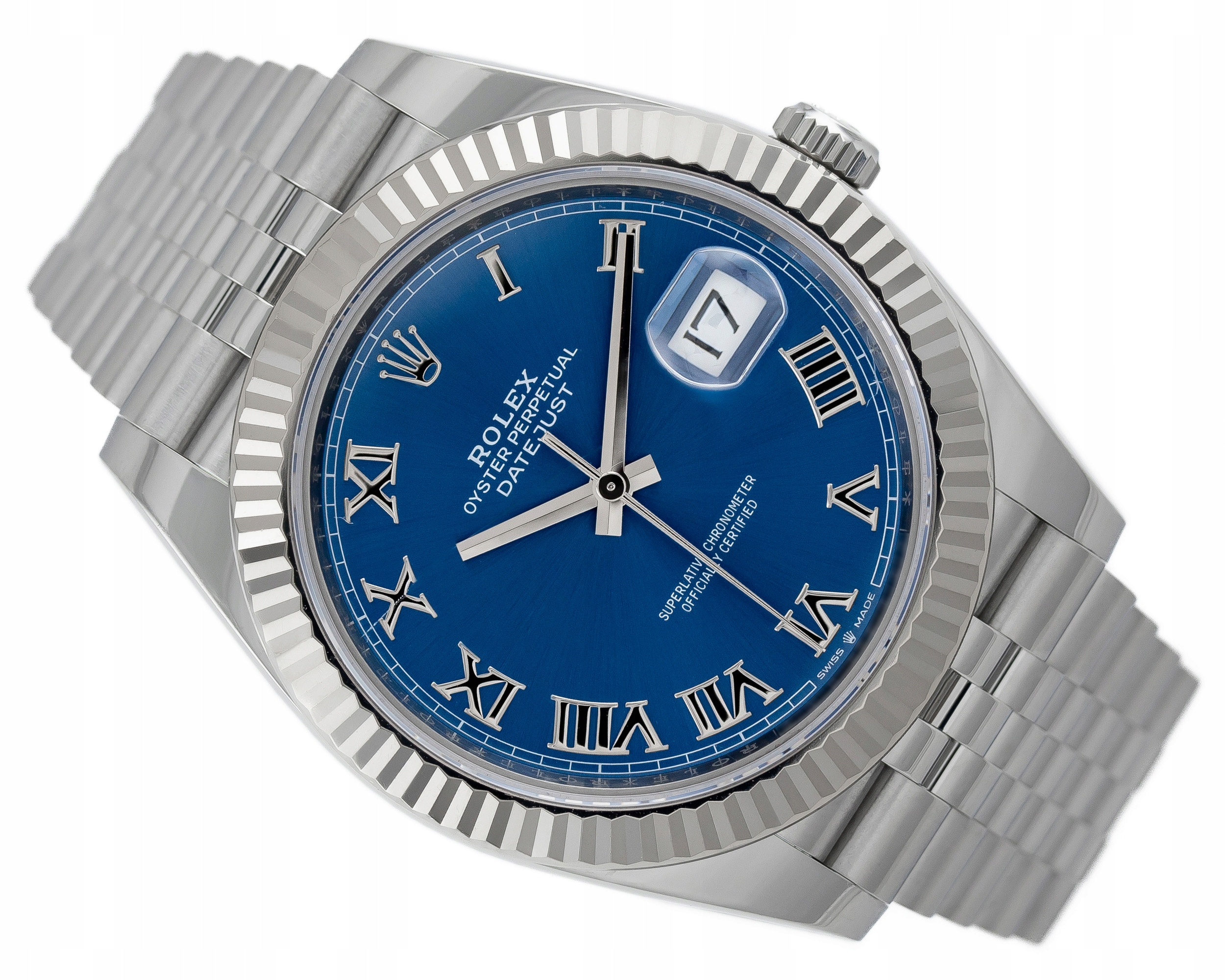 ROLEX DATEJUST 41 JUBILEE STEEL/WHITE GOLD 18K AZURRO BLUE ROMAN DIAL REF. 126334 FULL SET