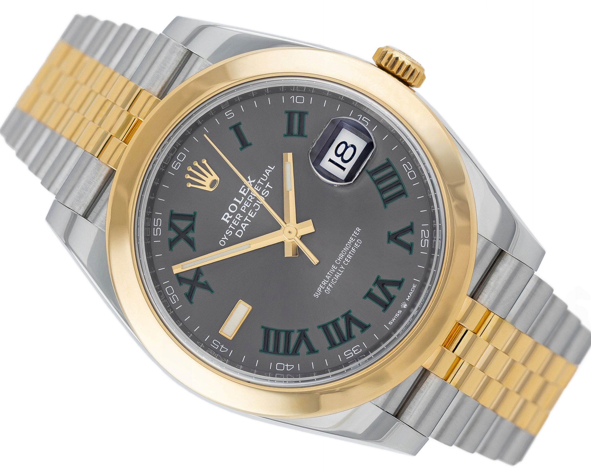 Przedmiotem sprzedaży jest przepiękny zegarek manufakturyROLEX DATEJUST 41 WIMBLEDON DIAL JUBILEE STEEL/YELLOW GOLD 18K REF. 126303 FULL SET(zdjęcia autentyczne – przedstawiają sprzedawany egzemplarz)