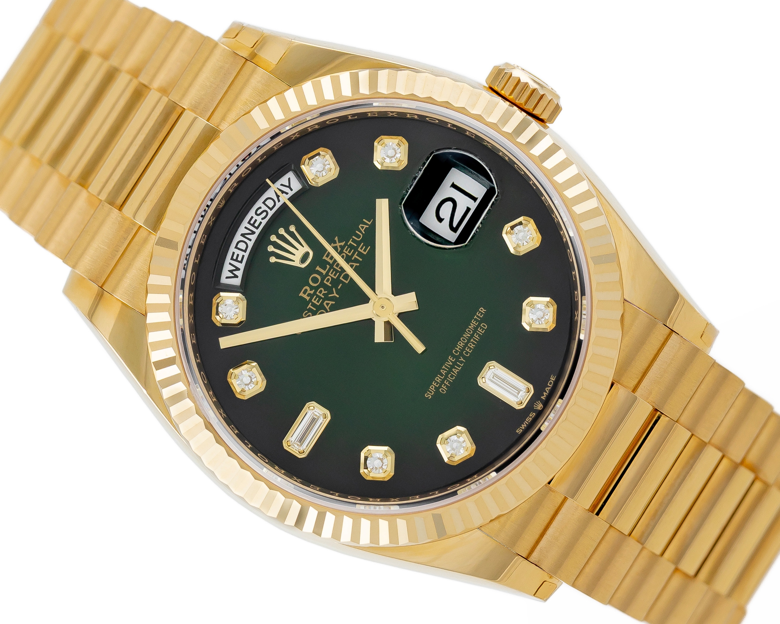 Royal Watch > Produkty > luksusowe zegarki > Męskie > ROLEX DAY-DATE 36 PRESIDENT YELLOW GOLD 18K GREEN OMBRE DIAMOND DIAL REF. 128238 FULL SET UNWORN
