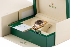 ROLEX DAY-DATE 40 PRESIDENT ROSE GOLD 18K EVEROSE CHOCOLATE MOTIF BROWN DIAL REF. 228235 FULL SET