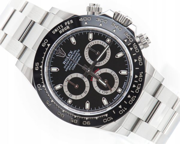 Przedmiotem sprzedaży jest przepiękny zegarek manufakturyROLEX DAYTONA COSMOGRAPH STEEL BLACK DIAL REF. 116500LN FULL SET(zdjęcia autentyczne – przedstawiają sprzedawany egzemplarz)
