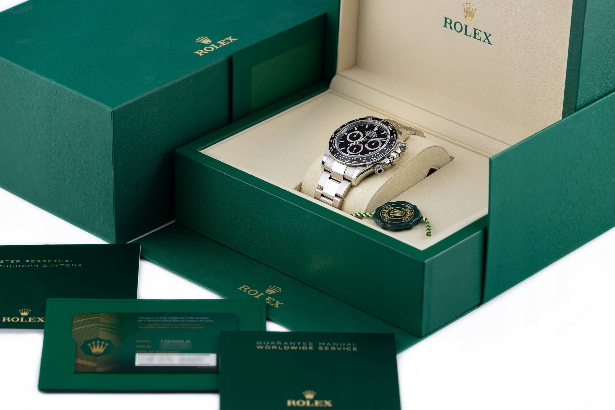 ROLEX DAYTONA COSMOGRAPH STEEL BLACK DIAL REF. 126500LN FULL SET UNWORN