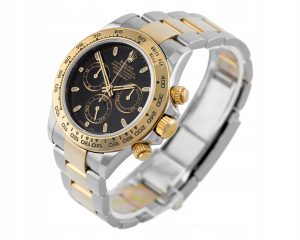 Numer referencyjny: 116503Mechanizm: automatyczny, cal. Rolex 4130, 44 kamieni łożyskujących, 72h rezerwy choduObudowa: 40 mm, koperta ze stali, bezel z żółtego złota 18K, czarna tarcza, szafirowe szkiełkoWodoszczelność: 10 ATMBransoleta/pasek: stal/żółte złoto 18KZapięcie: pojedynczy zatrzask – stal/żółte złoto 18KKomplikacje/funkcje: chronograf, mała sekunda, tachymetr, chronometrRok produkcji: 2017Stan: bardzo dobryPłeć: zegarek męski/unisexZawartość dostawy: oryginalne pudełko, komplet dokumentów, firmowa faktura