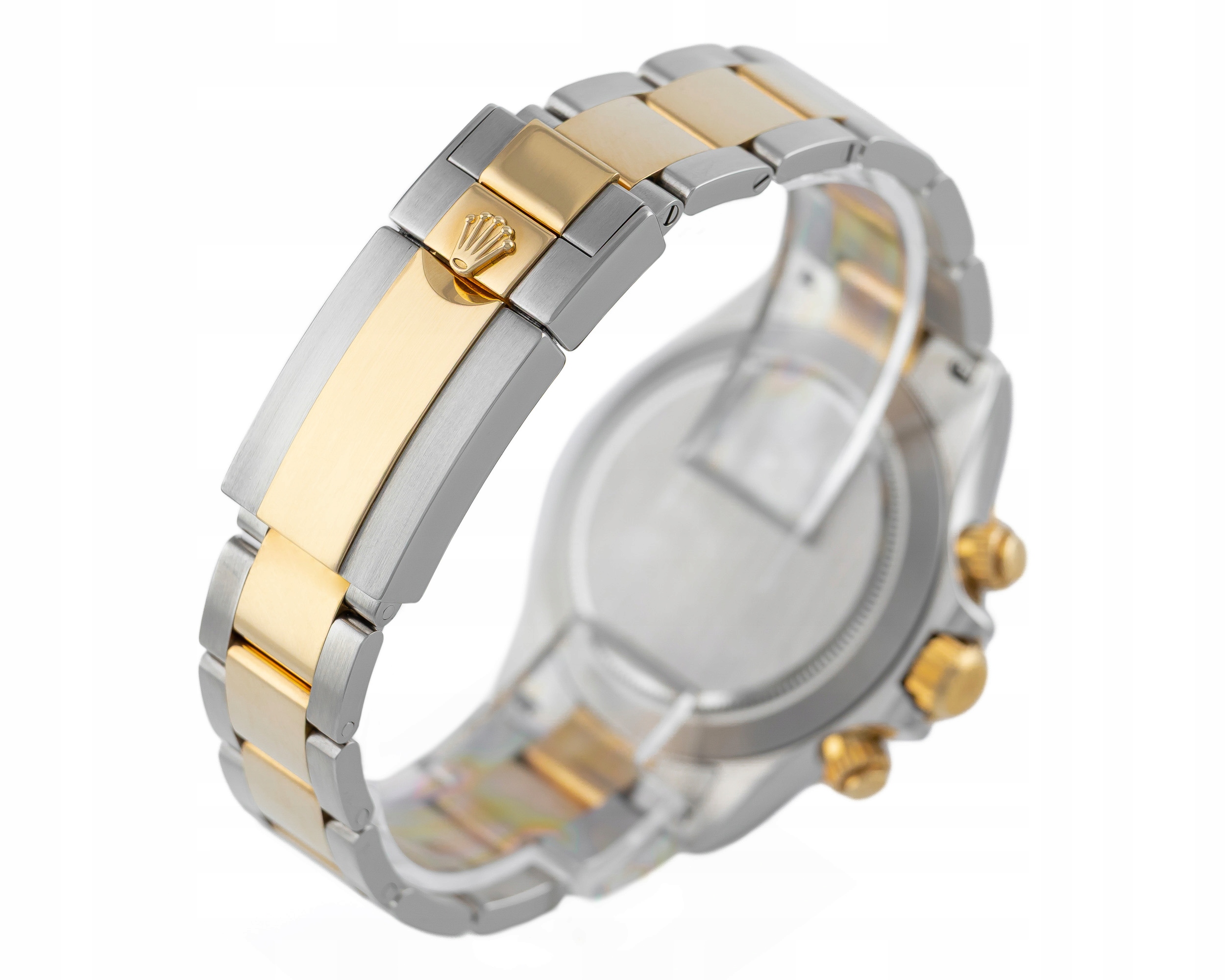 Numer referencyjny: 116503Mechanizm: automatyczny, cal. Rolex 4130, 44 kamieni łożyskujących, 72h rezerwy choduObudowa: 40 mm, koperta ze stali, bezel z żółtego złota 18K, czarna tarcza, szafirowe szkiełkoWodoszczelność: 10 ATMBransoleta/pasek: stal/żółte złoto 18KZapięcie: pojedynczy zatrzask – stal/żółte złoto 18KKomplikacje/funkcje: chronograf, mała sekunda, tachymetr, chronometrRok produkcji: 2017Stan: bardzo dobryPłeć: zegarek męski/unisexZawartość dostawy: oryginalne pudełko, komplet dokumentów, firmowa faktura