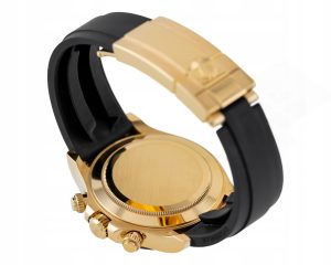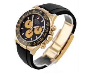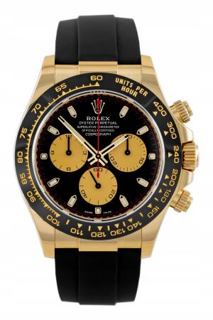 Numer referencyjny: 116518LNMechanizm: automatyczny, cal. Rolex 4130, 44 kamienie łożyskujące, 72h rezerwy choduObudowa: 40 mm, koperta z żółtego złota 18K, bezel z ceramiki, czarna tarcza, szafirowe szkiełkoWodoszczelność: 10 ATMBransoleta/pasek: Oysterflex – czarny kauczukZapięcie: pojedynczy zatrzask – żółte złoto 18KKomplikacje/funkcje: chronograf, mała sekunda, tachymetr, chronometrRok produkcji: 2021Stan: bardzo dobryPłeć: zegarek męski/unisexZawartość dostawy: oryginalne pudełko, komplet dokumentów, firmowa faktura