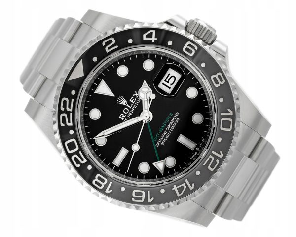 Przedmiotem sprzedaży jest przepiękny zegarek manufakturyROLEX GMT-MASTER II BRUCE WAYNE OYSTER STEEL BLACK DIAL REF. 126710GRNR FULL SET(zdjęcia autentyczne – przedstawiają sprzedawany egzemplarz)