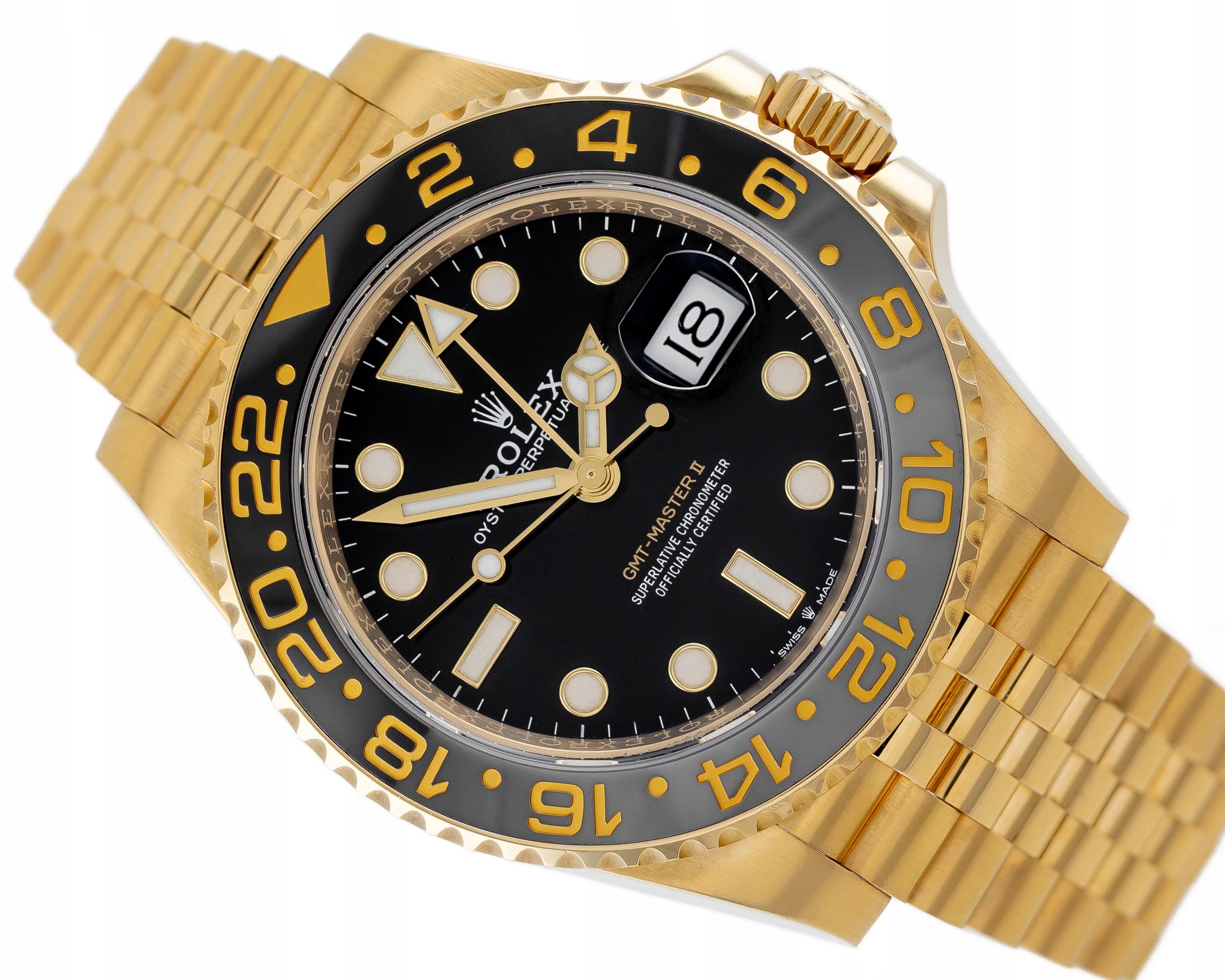 Royal Watch > Produkty > luksusowe zegarki > Męskie > ROLEX GMT-MASTER II JUBILEE YELLOW GOLD 18K BLACK DIAL REF. 126718GRNR FULL SET