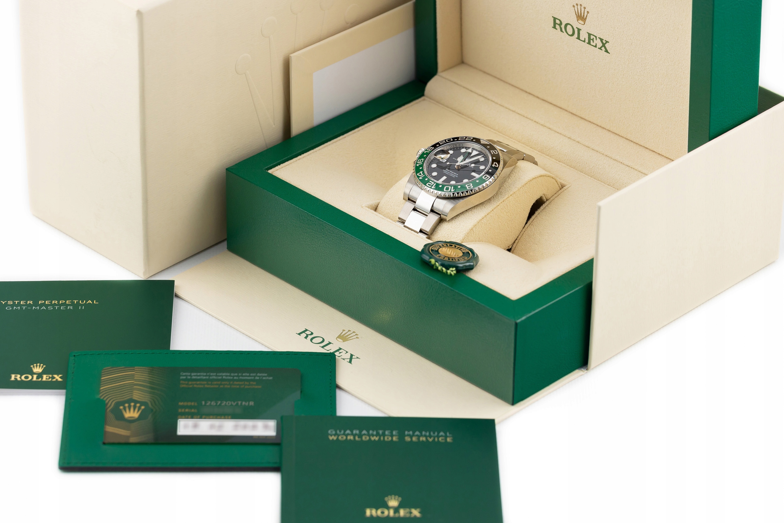 Royal Watch > Produkty > luksusowe zegarki > Męskie > ROLEX GMT-MASTER II SPRITE OYSTER STEEL REF. 126720VTNR FULL SET