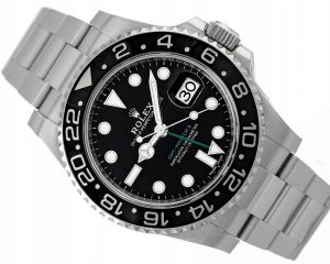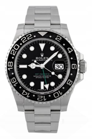 Numer referencyjny: 116710LNMechanizm: automatyczny, cal. Rolex 3186, 31 kamieni łożyskujących, 48h rezerwy choduObudowa: 40 mm, koperta ze stali, obrotowy bezel ze stali i ceramiki, czarna tarcza, szafirowe szkiełkoWodoszczelność: 10 ATMBransoleta/pasek: Oyster – stalZapięcie: pojedynczy zatrzask – stalKomplikacje/funkcje: GMT – druga strefa czasowa, data, chronometrRok produkcji: nieznany (karta serwisowa z 2020 r.)Stan: bardzo dobryPłeć: zegarek męski/unisexZawartość dostawy: oryginalne pudełko, certyfikat autentyczności, firmowa faktura