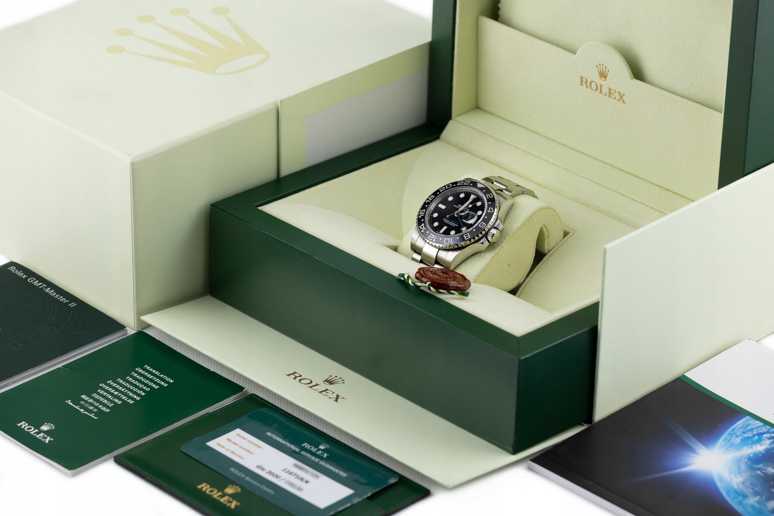 ROLEX GMT-MASTER II STEEL BLACK DIAL CERAMIC BEZEL REF. 116710LN BOX & SERVICE CARD