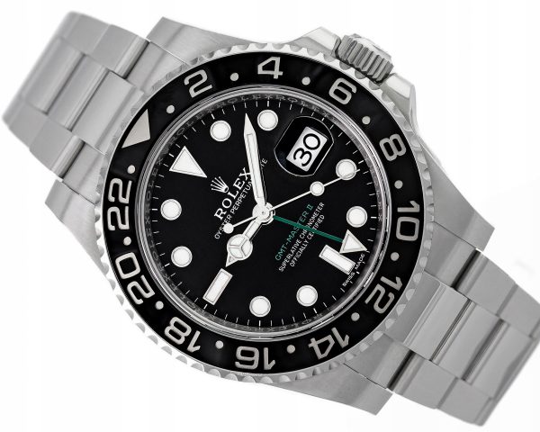 Przedmiotem sprzedaży jest przepiękny zegarek manufakturyROLEX GMT-MASTER II STEEL BLACK DIAL CERAMIC BEZEL REF. 116710LN BOX & SERVICE CARD(zdjęcia autentyczne – przedstawiają sprzedawany egzemplarz)