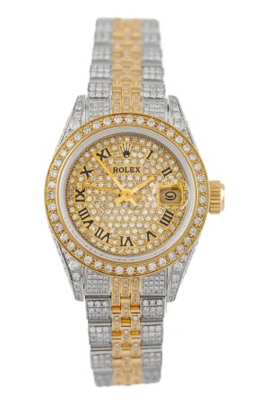 ROLEX LADY-DATEJUST 26 JUBILEE STEEL/YELLOW GOLD 18K BLUE DIAMOND DIAL REF. 69173 FULL SET LIKE NEW