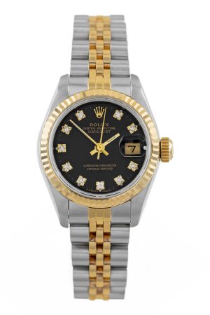 Royal Watch > Produkty > luksusowe zegarki > Damskie > ROLEX LADY-DATEJUST 26 JUBILEE STEEL/YELLOW GOLD 18K BLACK DIAMOND DIAL REF. 69173 FULL SET