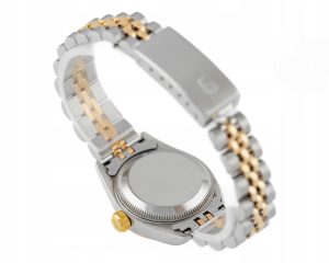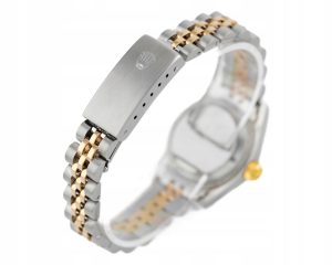 Numer referencyjny: 69173Mechanizm: automatyczny, cal. 2135, 29 kamieni łożyskujących, 40h rezerwy choduObudowa: 26 mm, koperta ze stali, karbowany bezel z żółtego złota 18K, szafirowe szkiełko, tarcza z diamentowymi indeksamiWodoszczelność: 10 ATMBransoleta/pasek: Jubilee – stal/żółte złoto 18KZapięcie: pojedynczy zatrzask – stalKomplikacje/funkcje: data, chronometrRok produkcji: 1991Stan: jak nowyPłeć: zegarek damskiZawartość dostawy: oryginalne pudełko, komplet dokumentów, firmowa faktura