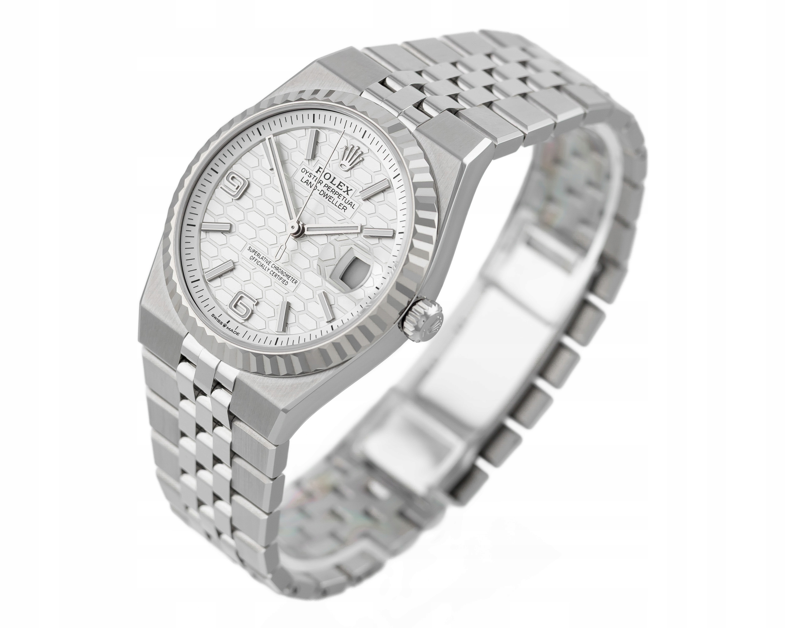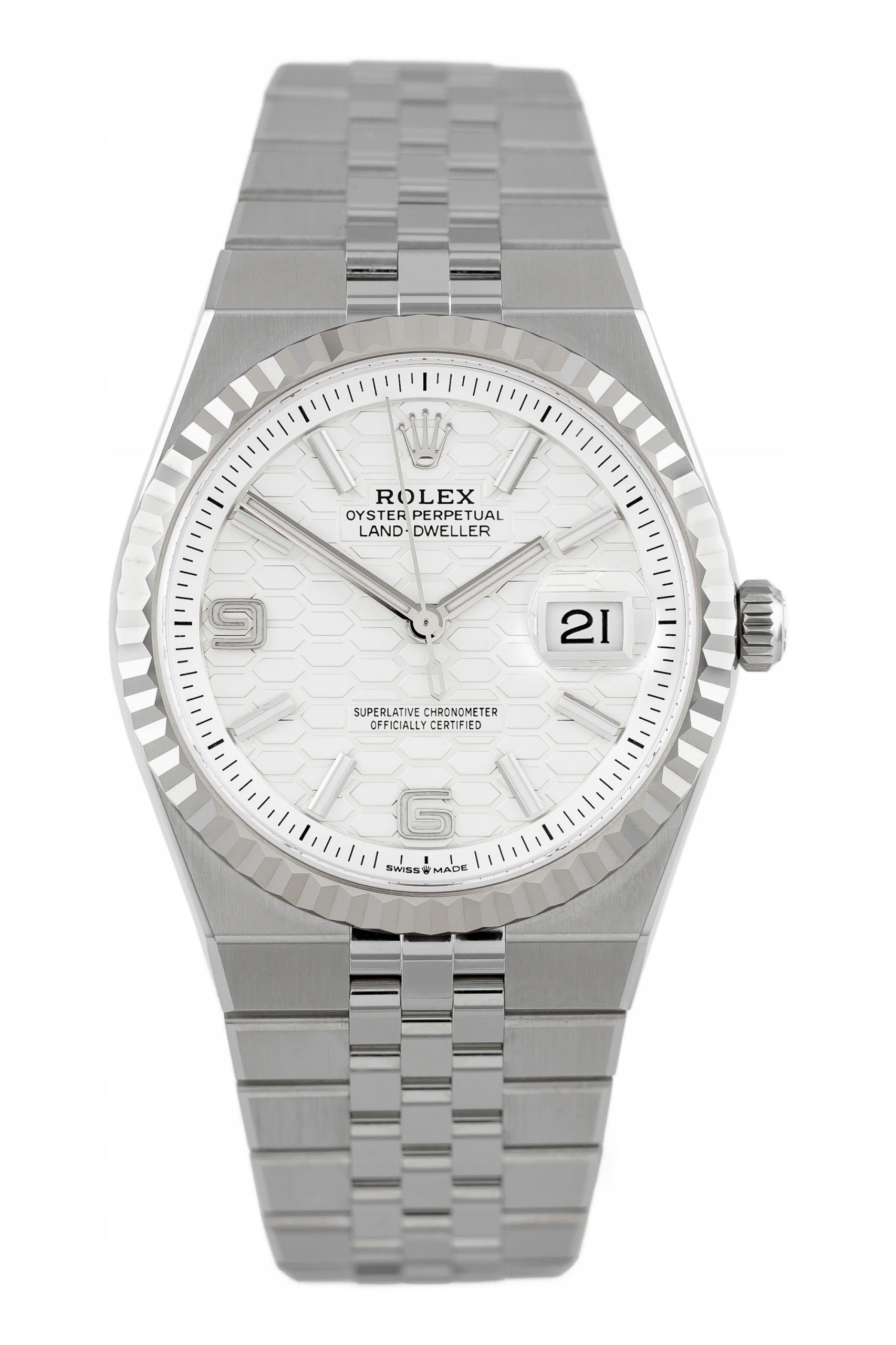 ROLEX LAND-DWELLER 40 FLAT JUBILEE STEEL/WHITE GOLD 18K WHITE HONEYCOMB MOTIF DIAL REF. 127334 FULL SET UNWORN