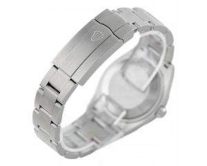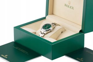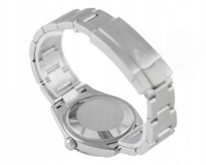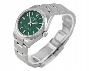 Numer referencyjny: 277200Mechanizm: automatyczny, cal. Rolex 2232, 31 kamieni łożyskujących, 55h rezerwy choduObudowa: 31 mm, koperta i bezel ze stali, zielona tarcza, szafirowe szkiełkoWodoszczelność: 10 ATMBransoleta/pasek: Oyster – stalZapięcie: pojedynczy zatrzask – stalKomplikacje/funkcje: chronometrRok produkcji: nieznanyStan: bardzo dobryPłeć: zegarek damskiZawartość dostawy: oryginalne pudełko, certyfikat autentyczności, firmowa faktura