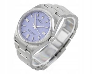 Numer referencyjny: 126000Mechanizm: automatyczny, cal. Rolex 3230, 31 kamieni łożyskujących, 70h rezerwy choduObudowa: 36 mm, koperta i bezel ze stali, lawendowa tarcza, szafirowe szkiełkoWodoszczelność: 10 ATMBransoleta/pasek: stalZapięcie: pojedynczy zatrzask – stalKomplikacje/funkcje: chronometrRok produkcji: 2025Stan: nienoszonyPłeć: zegarek męski/unisexZawartość dostawy: oryginalne pudełko, komplet dokumentów, firmowa faktura